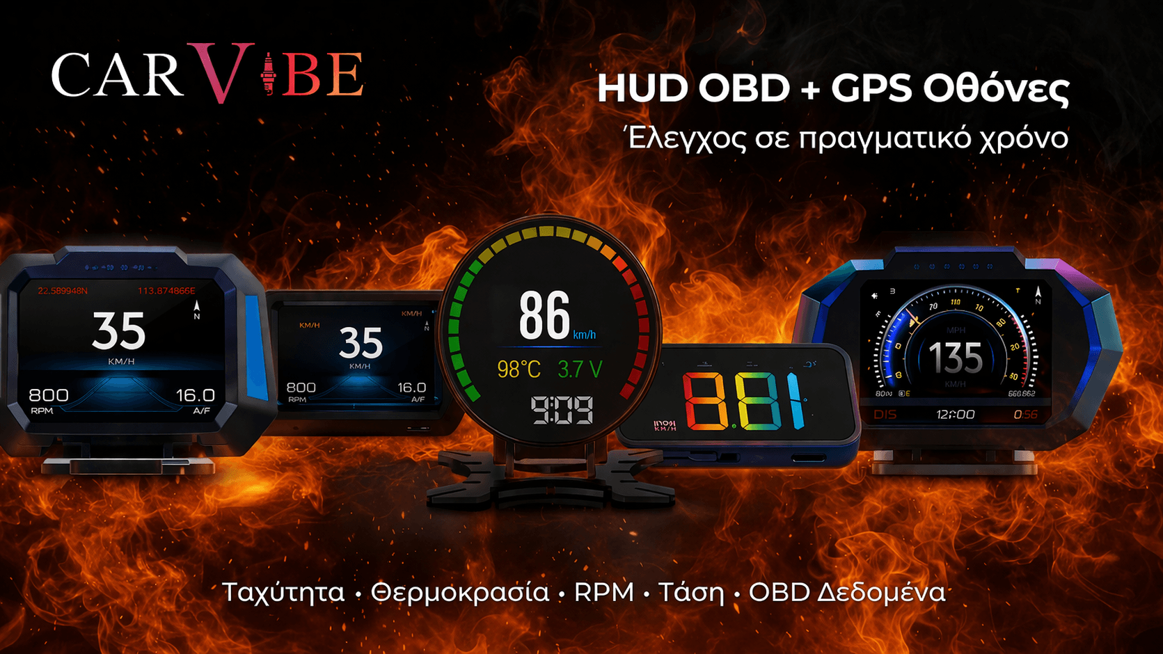 Μάθε πώς λειτουργούν τα HUD, ποιο μοντέλο ταιριάζει στο αυτοκίνητό σου και δες επιλεγμένες λύσεις OBD και GPS για real-time ενδείξεις ταχύτητας, θερμοκρασίας και δεδομένων οχήματος.