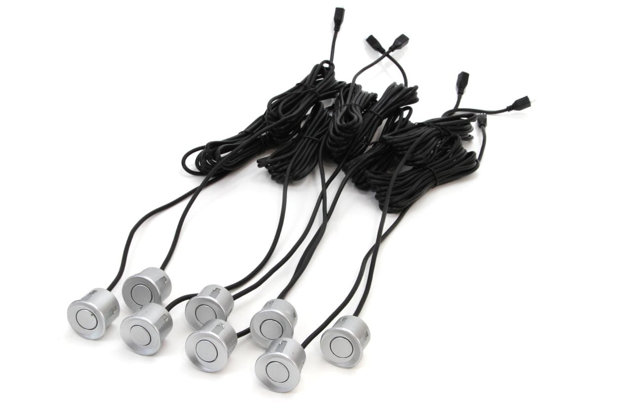 Amio Σύστημα Παρκαρίσματος 8 Αισθητήρες Ασημί 22mm 12V Εμπρός-Πίσω Buzzer 2.5m – 1 σετ